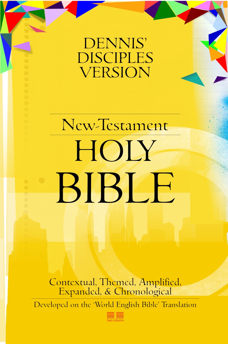 The “Dennis Disciples Version” of the New Testament Holy Bible is new. It is developed by the instruction and guidance of the Holy Spirit. It is designed to make discipleship and bible study more insightful, understandable, and engaging for character-building. It is Contextual, Themed, Amplified, Expanded, and Chronological. And Developed on the “World English Bible” Translation.